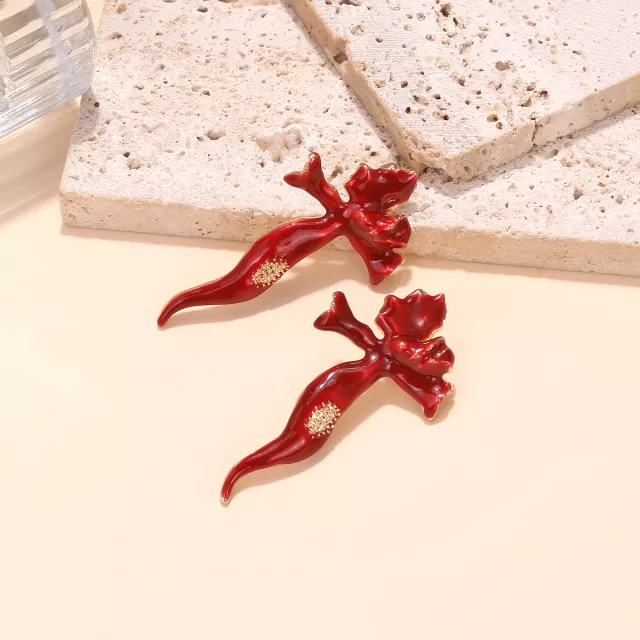 These earrings are crafted with attention to detail and designed for comfort. The silver ear pin provides a lightweight feel, while the striking red rose and cross motif bring out your bold personality. Their timeless yet edgy design makes them versatile enough to wear year-round.
