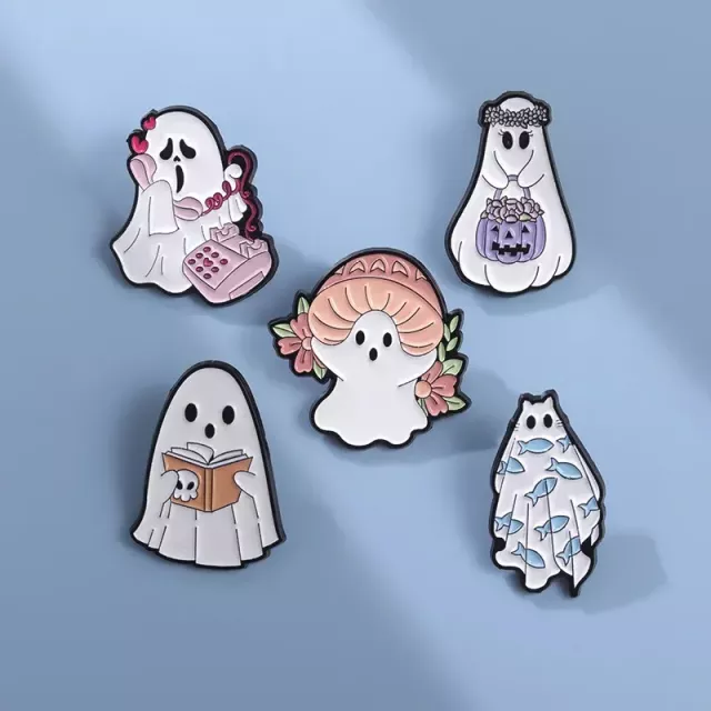 Each pin features a charming cartoon ghost with a punk attitude, combining the spirit of Halloween with a dash of humor and individuality. The peaceful shape and lightweight build make them a joy to wear on jackets, backpacks, sweaters, or even costumes. Plus, the smooth enamel finish ensures they pop with vibrant color and shine under the autumn moonlight.