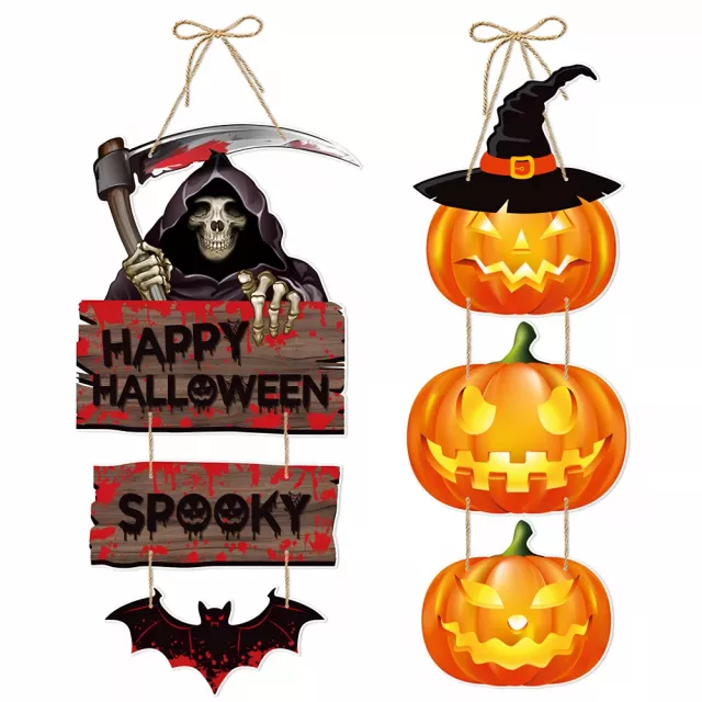 Spooky Halloween Paperboard Door Hangings – Skull, Bat, Pumpkin, Ghost & More